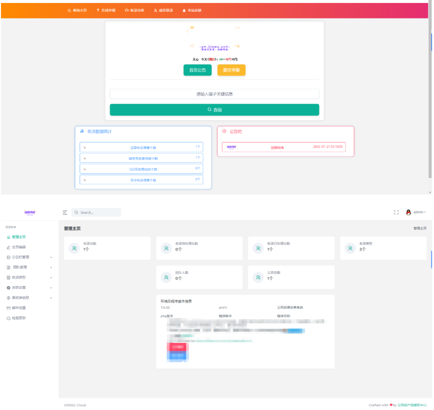 一款开源的黑名单举报查询系统,系统支持多种方式录入黑名单信息,可手动添加黑名单类型,适用于防诈骗查查询
